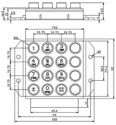 产品描述锌合金16位按键,盲文按键应用场合适用于ATM机、门禁系统、电梯、保险箱、自动售币机、密码锁、自助打单查询机、公共信息查询设备自动化监视、安防设备、工业PC数控平台、仪器检测设备、自助缴费机、石化厂、煤矿冶金、加油机、自助终端设备、各种电话机以及工业应用设备。