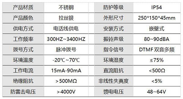 4. 联动功能:本话机预留一开一断两路开节点,当话机摘机/挂机时,两路干节点分别提供一开一断两组脉冲开关量信号;