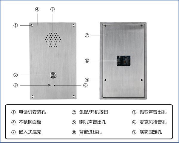 4. 话机整体防护等级为:IP54,可用湿抹布擦拭,但不能用水淋;