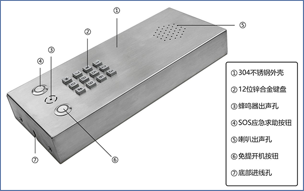 5. 话机整体防护等级为:IP54,如需露天安装需加装防雨罩;