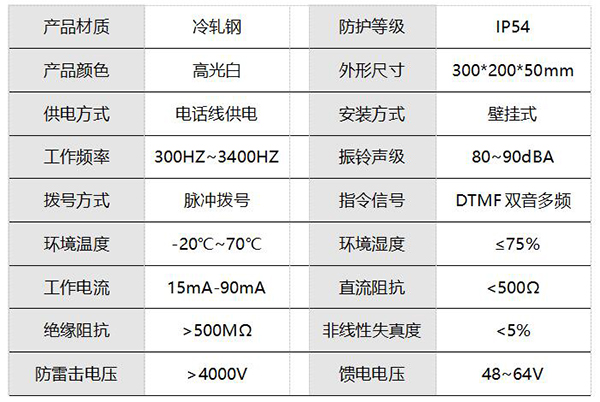 5. 话机整体防护等级为:IP54,如需露天安装,需要加装防雨罩。