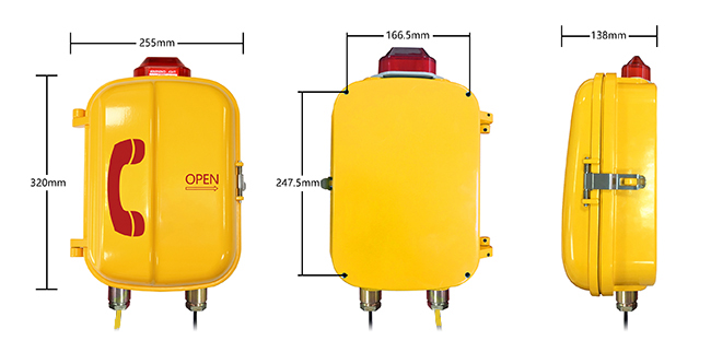 光纤一键呼叫免提防水电话机支持标准SIP协议,可以有效兼容市面常用IPPBX以及网络调度平台,是专门针对地铁隧道、地下管廊隧道、高速公路隧道、矿山矿井、电厂电站、钢铁厂、港口、船舶、电解车间等高潮湿、高粉尘环境而研发的特种电话机,适合长期安装在各种恶劣环境使用,具备防水、防潮、防尘、防寒、抗冻、耐高温、抗氧化、抗腐蚀、抗暴力敲击等特性。