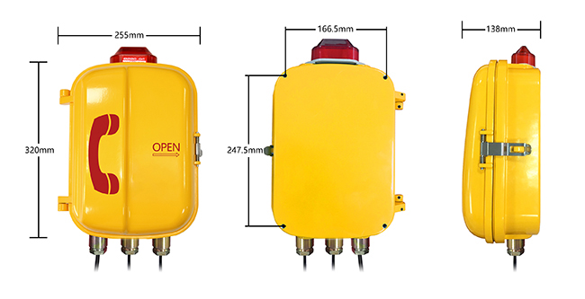 防水扩音声光报警电话机可以与市面上众多品牌的程控电话交换机兼容,是专门针对地铁隧道、地下管廊隧道、高速公路隧道、矿山矿井、电厂电站、钢铁厂、港口、船舶、电解车间等高潮湿、高粉尘环境而研发的特种电话机,适合长期安装在各种恶劣环境使用,具备防水、防潮、防尘、防寒、抗冻、耐高温、抗氧化、抗腐蚀、抗暴力敲击等特性。
