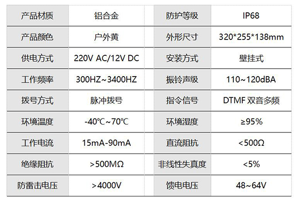 6. 话机外壳采用多重防水设计,所有进线位置均使用专业抗老化防水电子胶密封,话机整体防护等级达IP68;