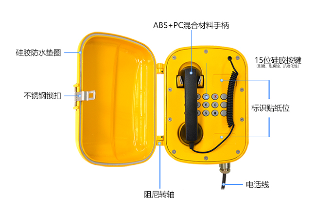 防水防潮电话机可以与市面上众多品牌的程控电话交换机兼容,是专门针对地铁隧道、地下管廊隧道、高速公路隧道、矿山矿井、电厂电站、钢铁厂、港口、船舶、电解车间等高潮湿、高粉尘环境而研发的特种电话机,适合长期安装在各种恶劣环境使用,具备防水、防潮、防尘、防寒、抗冻、耐高温、抗氧化、抗腐蚀、抗暴力敲击等特性。