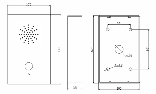 4. 话机整体防护等级为:IP54,如需露天安装需加装防雨罩。