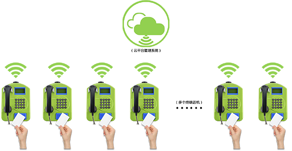 使用者手持一张卡(13.56M射频卡、ID卡、CPU卡)或者通过校园一卡通的IC卡,提起听筒刷卡即可使用。