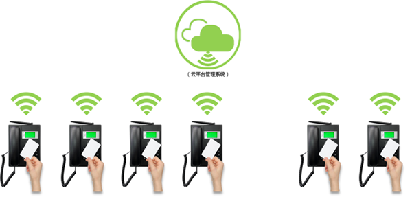 使用者手持一张卡(13.56M射频卡、ID卡、CPU卡)或者通过校园一卡通的IC卡,提起听筒刷卡即可使用。