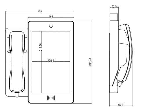 整机尺寸:245*290.78*86.59mm(厚度含话筒)