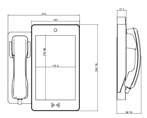 整机尺寸:245*290.78*86.59mm(厚度含话筒)
