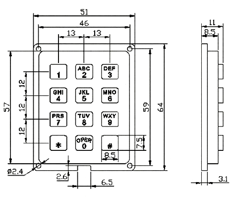产品描述12位-ABS塑料-字母数字按键应用场合适用于ATM机、门禁系统、电梯、保险箱、自动售币机、密码锁、自助打单查询机、公共信息查询设备自动化监视、安防设备、工业PC数控平台、仪器检测设备、自助缴费机、石化厂、煤矿冶金、加油机、自助终端设备、各种电话机以及工业应用设备。