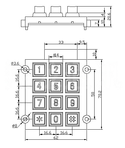 产品描述锌合金-12位-纯数字字符应用场合适用于ATM机、门禁系统、电梯、保险箱、自动售币机、密码锁、自助打单查询机、公共信息查询设备自动化监视、安防设备、工业PC数控平台、仪器检测设备、自助缴费机、石化厂、煤矿冶金、加油机、自助终端设备、各种电话机以及工业应用设备。