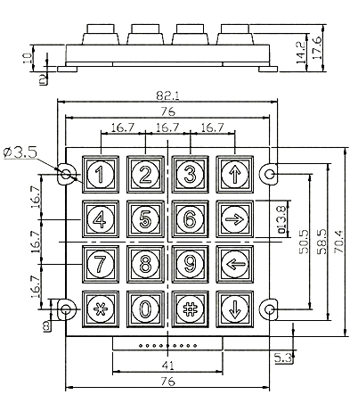 产品描述锌合金金属16位按键,右侧上下左右箭头应用场合适用于ATM机、门禁系统、电梯、保险箱、自动售币机、密码锁、自助打单查询机、公共信息查询设备自动化监视、安防设备、工业PC数控平台、仪器检测设备、自助缴费机、石化厂、煤矿冶金、加油机、自助终端设备、各种电话机以及工业应用设备。