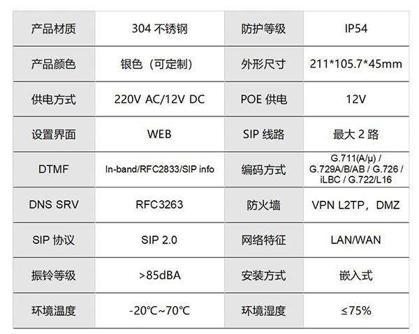 3. 联动功能:本话机预留干节点信号,可与摄像头等外部设备进行联动;