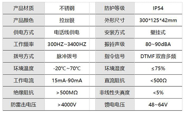 5. 话机整体防护等级为:IP54,如需露天安装需加装防雨罩;