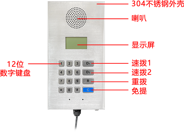 直通键呼叫:本机具有 2 个直通键,可直接拨叫 D1、D2中的任一已设定的特别用户,实现单键接通功能。
