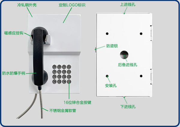 5. 话机整体防护等级为:IP54,如需露天安装,需要加装防雨罩。