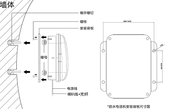 光纤免提防水扩音电话机支持标准SIP协议,可以有效兼容市面常用IPPBX以及网络调度平台,是专门针对地铁隧道、地下管廊隧道、高速公路隧道、矿山矿井、电厂电站、钢铁厂、港口、船舶、电解车间等高潮湿、高粉尘环境而研发的特种电话机,适合长期安装在各种恶劣环境使用,具备防水、防潮、防尘、防寒、抗冻、耐高温、抗氧化、抗腐蚀、抗暴力敲击等特性。