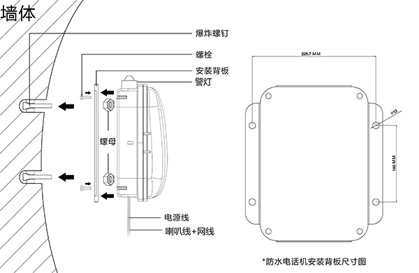 IP防水扩音声光报警电话机支持标准SIP协议,可以有效兼容市面常用IPPBX以及网络调度平台,是专门针对地铁隧道、地下管廊隧道、高速公路隧道、矿山矿井、电厂电站、钢铁厂、港口、船舶、电解车间等高潮湿、高粉尘环境而研发的特种电话机,适合长期安装在各种恶劣环境使用,具备防水、防潮、防尘、防寒、抗冻、耐高温、抗氧化、抗腐蚀、抗暴力敲击等特性。