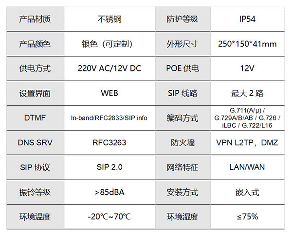 4. 联动功能:本话机预留干节点信号,可与摄像头等外部设备进行联动;