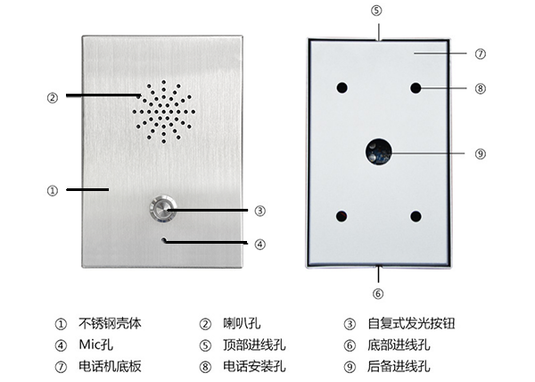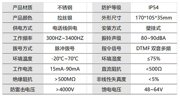 4. 话机整体防护等级为:IP54,如需露天安装需加装防雨罩。