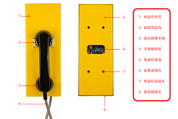 1. 话机采用冷轧钢材质,表面喷涂高档户外粉漆,具备防寒、抗冻、防尘、防潮、耐磨、抗暴力敲击等特点。
